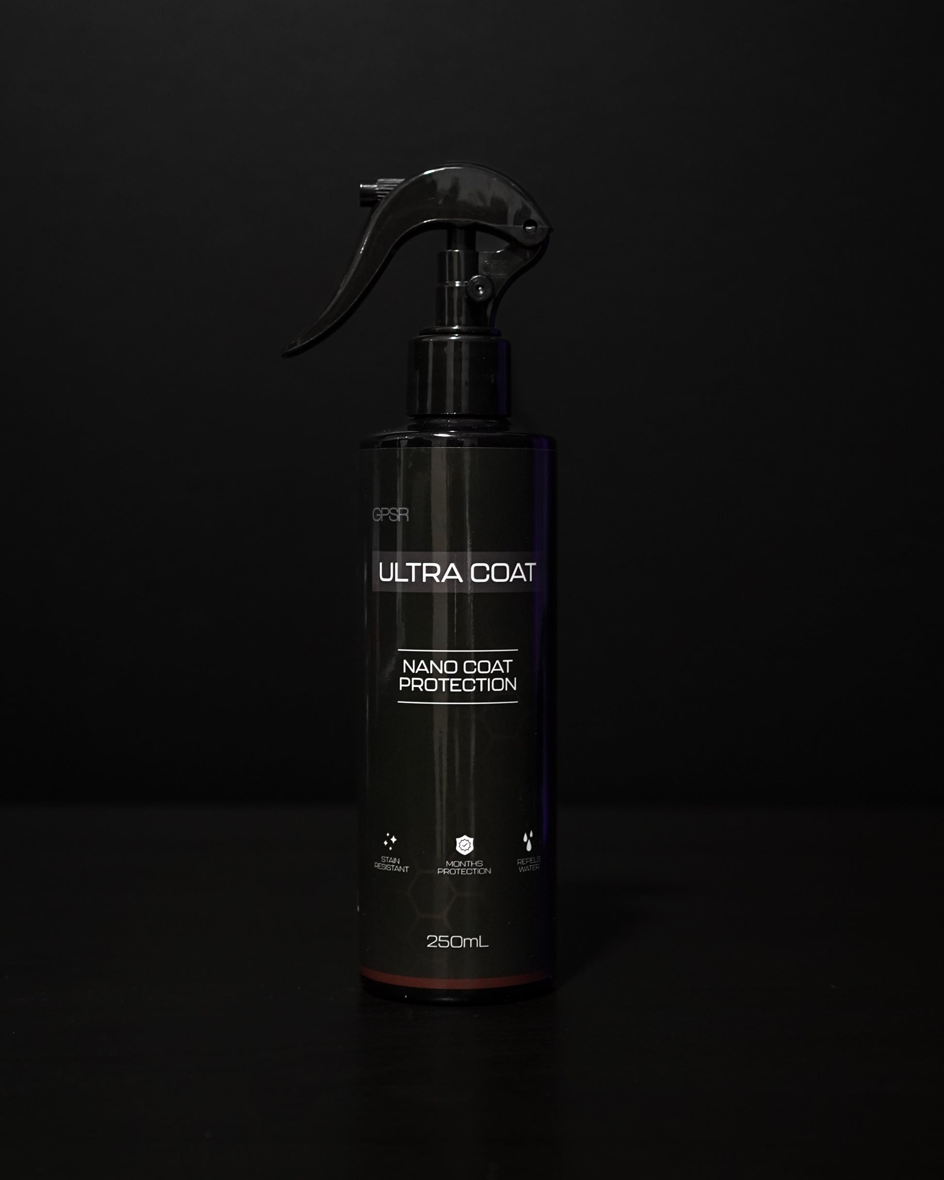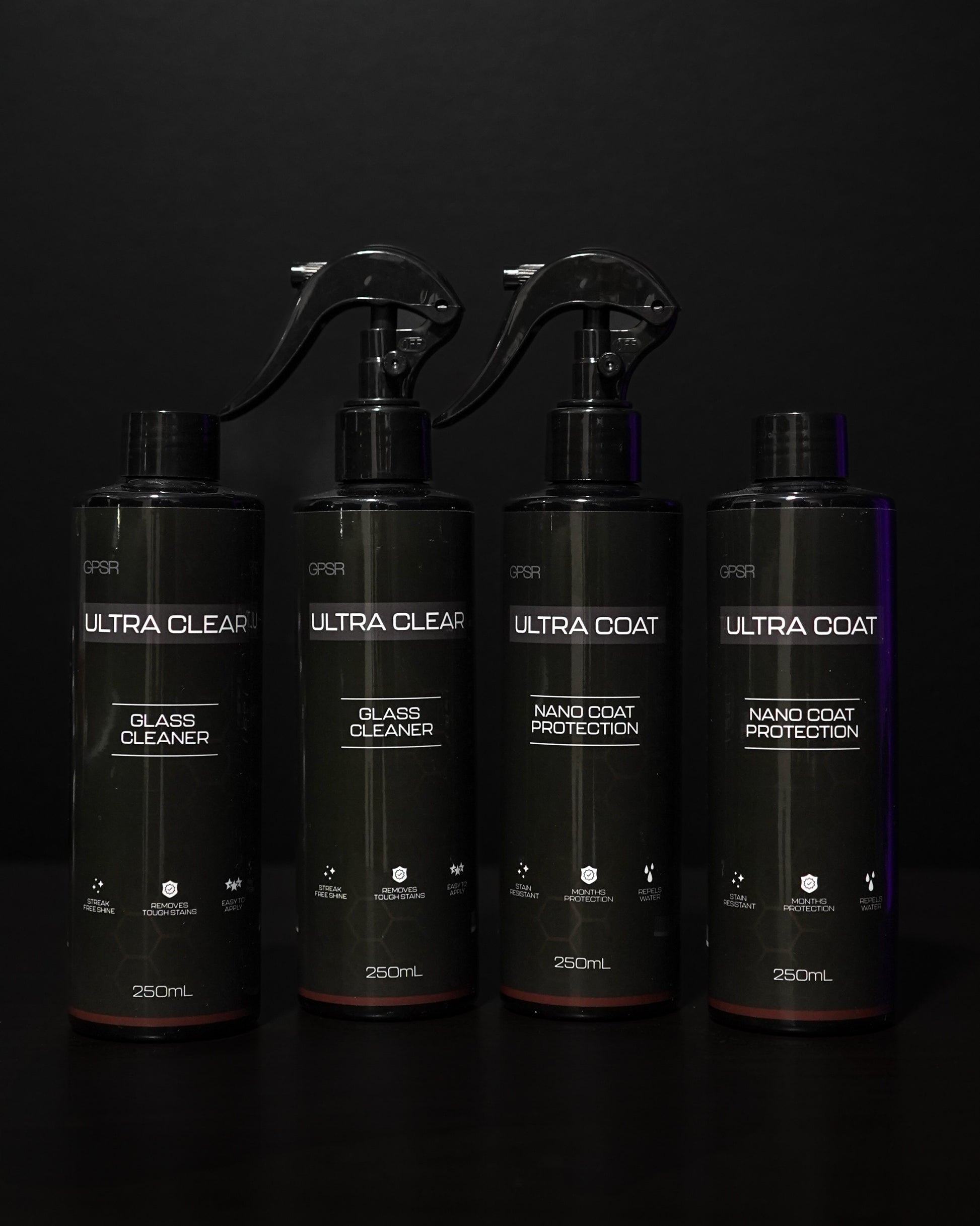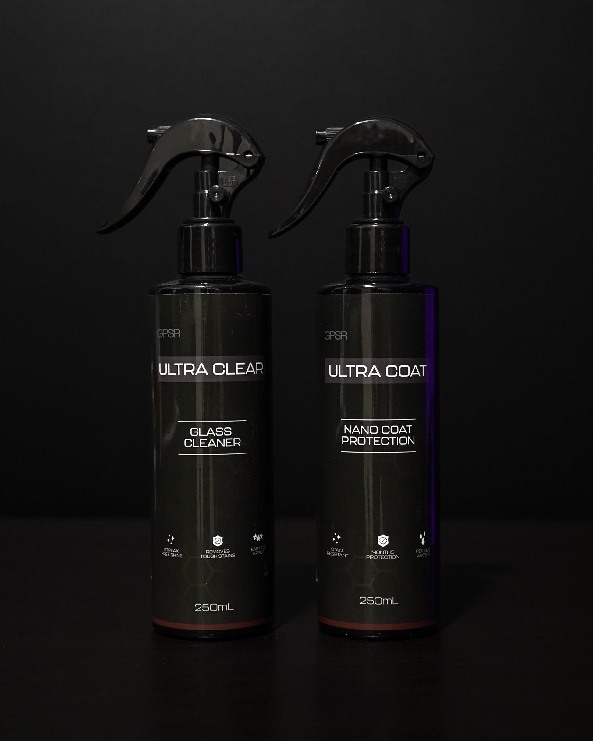 ULTRA COAT by GPSR, is suitable for all glass surfaces, including mirrors, car windows, and works best when ULTRA CLEAR, pre-cleaner is applied prior.